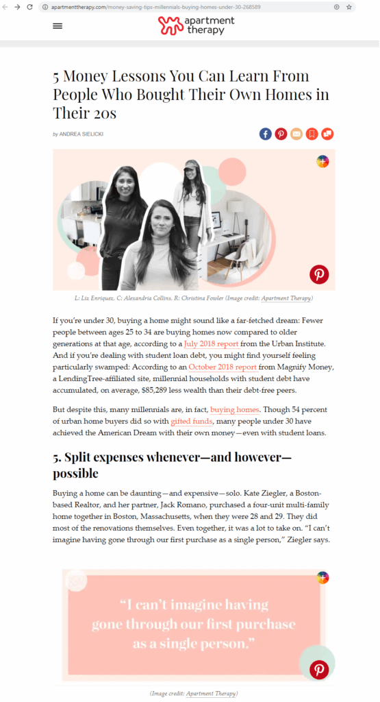 APARTMENT THERAPY: 5 Money Lessons You Can Learn From People Who Bought Their Own Homes in Their 20s